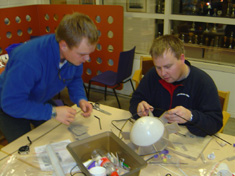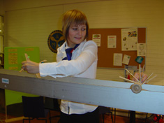 En av segrarna i Flygbanan. Testar gör här det team som delade förstaplatsen Konstruktion av vinnarfarkosten.