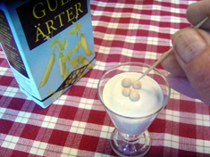 häll den i en koniskt glas, till exempel ett snapsglas, och