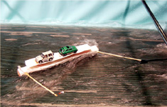 att köra sin forsfärja tur och retur med 2 bilar ombord.